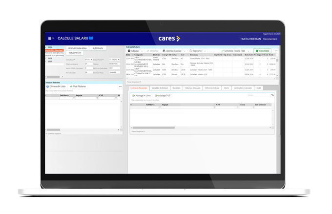 Cares HR powered by SOFTONE este o soluție all-in-one care îți permite să îți desfășori toate procesele de HR și salarizare dintr-o singură aplicație, într-un mod complet automatizat. Fiind singurul soft de resurse umane din România care se bazează pe un robot programabil (RPA), folosind Cares HR powered by SOFTONE vei putea efectua imediat calculele salariale, indiferent de modelele utilizate, te vei putea adapta pe loc la modificările legislative din domeniul de HR, vei putea face reconstrucții salariale în mod retroactiv și vei avea vizibilitate completă asupra tuturor elementelor salariale și formulelor de calcul.